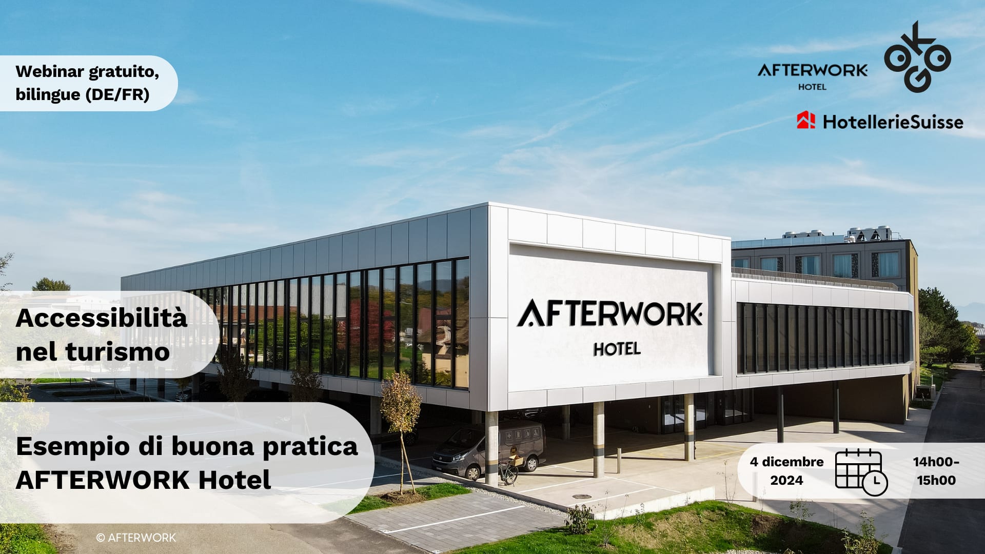 In questo webinar bilingue, il Direttore Generale Pascal Küttel illustra l'impegno dell'AFTERWORK Hotel per l'accessibilità. Valérie Ginier del Centro Architettura senza ostacoli presenterà inoltre le nuove linee guida.